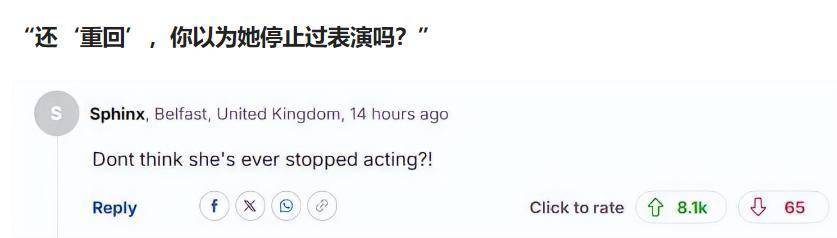“她接到了很多邀约,但这次感觉最合适’,那可不,演她自己么.”